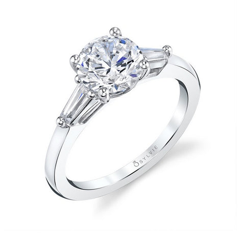 Round Cut Three Stone Engagement Ring with Baguettes - Nicolette