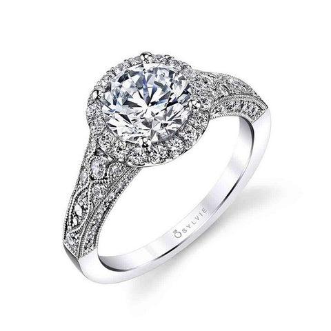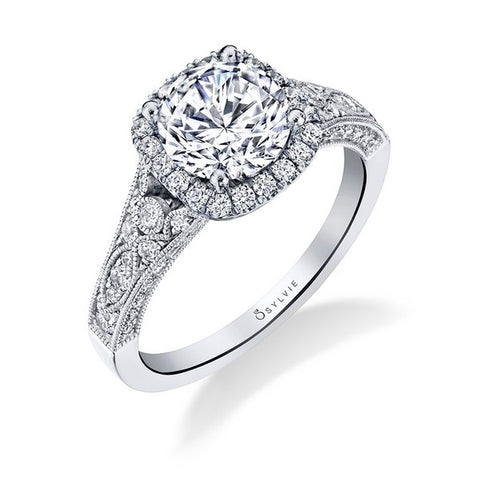Round Cut Modern Vintage Cushion Halo Engagement Ring - Cheri