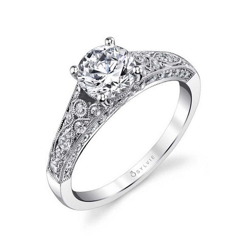 Round Cut Classic Pave Engagement Ring - Carlotta
