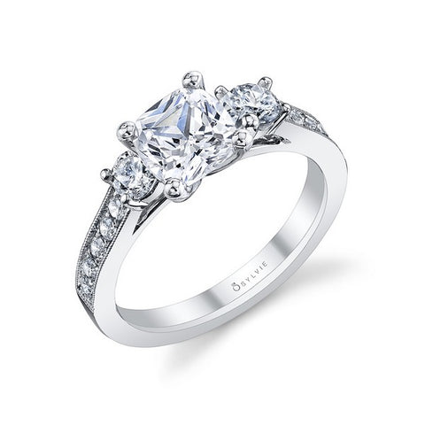 Round Cut Vintage Inspired Three Stone Engagement Ring - Noella