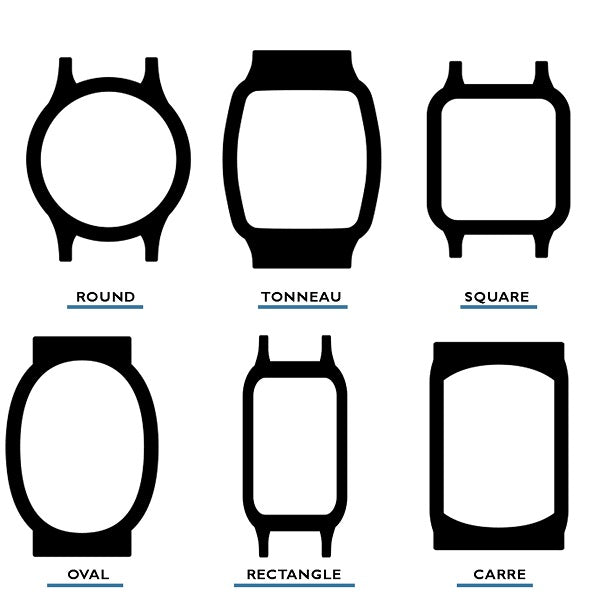 The case holds the movement, protecting it from the elements and wear and tear. The case is available in many shapes, including round, square, oval, rectangular, tank, carre, carage, tonneau and asymmetrical.