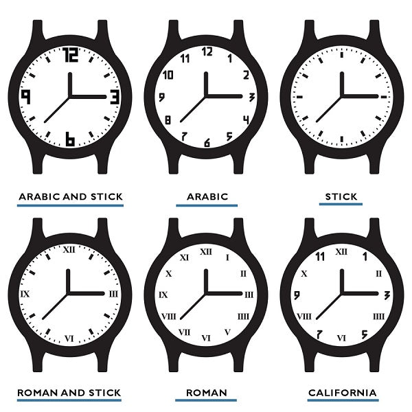| Roman & Stick | features both Roman numerals and stick mark indicators. |
